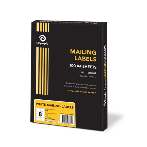 Olympic Mailing Label 8 Per Sheet 67.7x99.1mm Box of 100