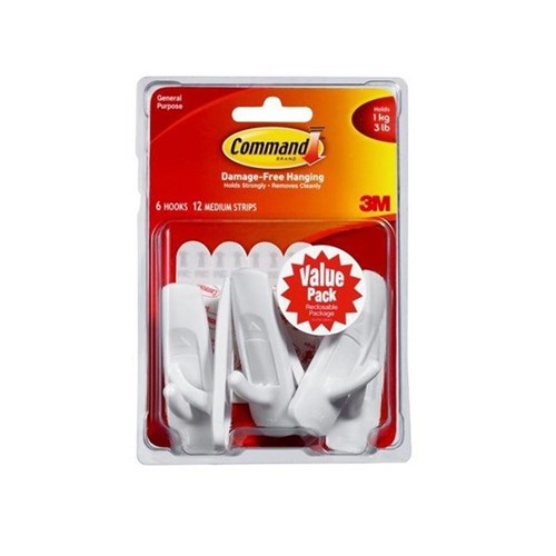 COMMAND 17001VP-6PK MEDIUM HOOKS VALUE PACK 6 HOOKS / 12 STRIPS