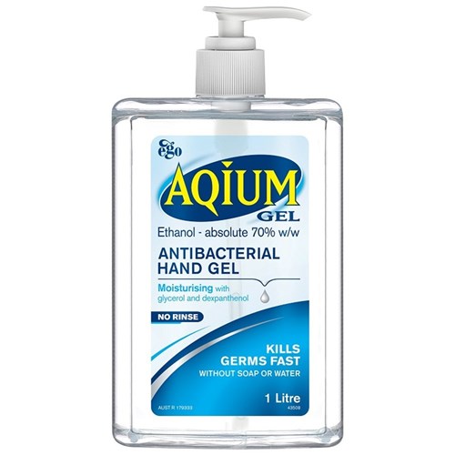 Aqium Antibacterial Hand Sanitiser Gel 1 Litre Pump Bottle