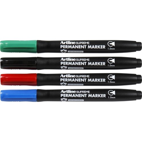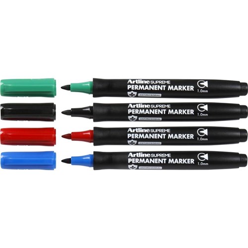 The Artline Supreme Antimicrobial Range utilises plastic that incorporates a silver-based antimicrobial substance which inhibits the growth of bacteria on the marker?s surface.