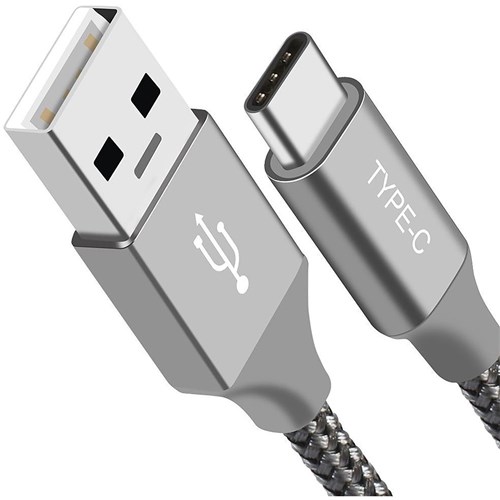 USB-C 3.1 Type-C Data Sync Charger Cable Silver Strong Braided Heavy Duty Fast Charging for Samsung Galaxy Note 8 and S8 Plus, LG Google, MacBook.