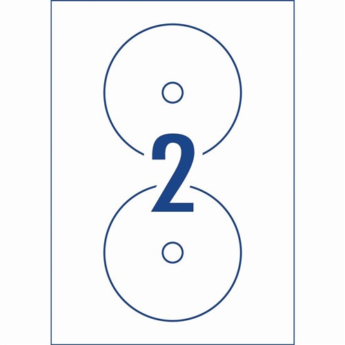Size: 117mm diameter. 50 labels, 25 sheets. 2 labels per sheet (2UP).