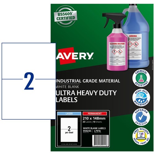 Avery Identification Laser Ultra Resistant White L7916 210x148mm 2UP 20 Labels