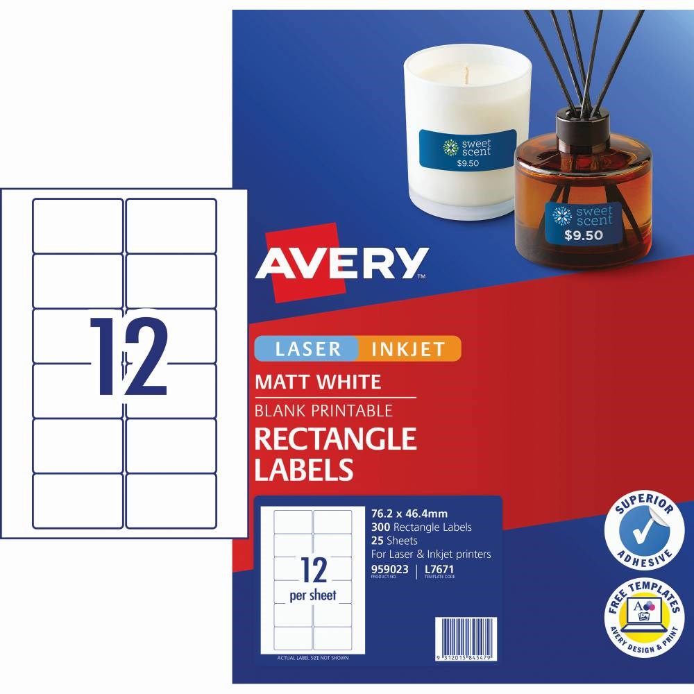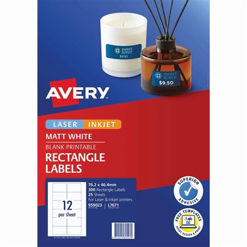 Avery Multi-Purpose Laser & Inkjet Labels White L7671 76.2x46.4 12 UP 300 Labels