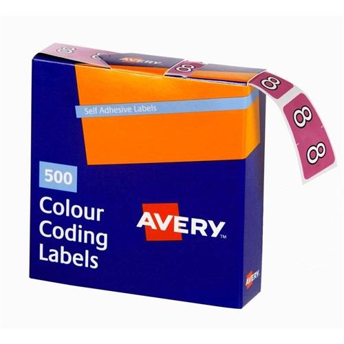 Avery Numeric Coding Label 8 Side Tab 25x38mm Mauve Box Of 500