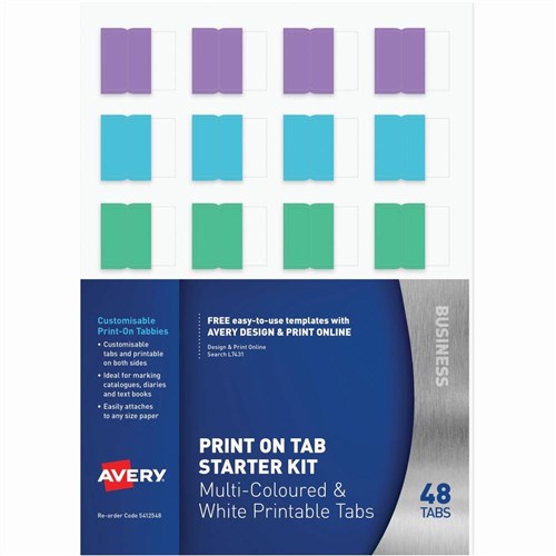 Starter kit contains 48 coloured tabs and 48 white tabs and includes Avery Wizard.