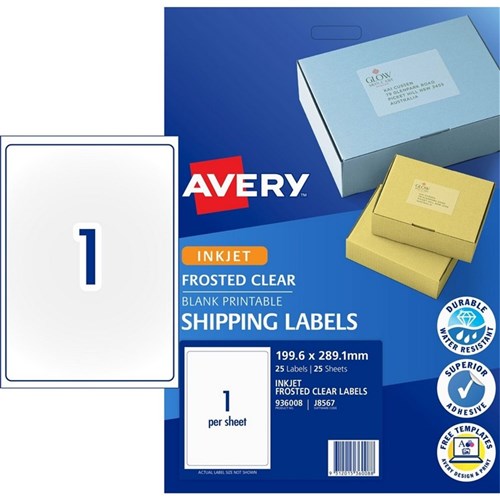 AVERY QUICK PEEL INKJET LABEL J8567 199.6 x 289.1mm 1UP 25 Labels 25 Sheets