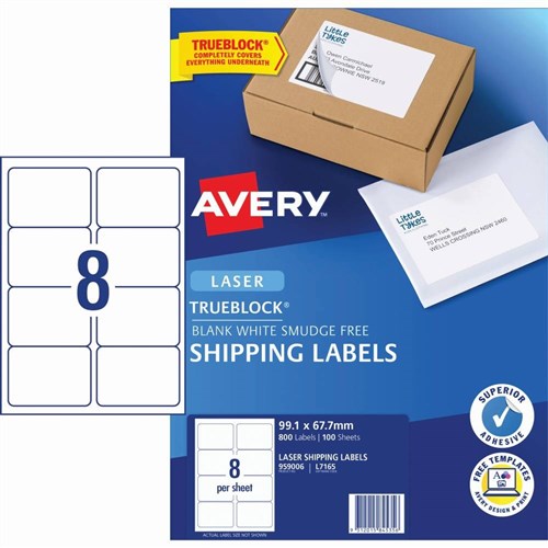 Avery Shipping Laser & Inkjet White L7165 99.1x67.7mm 8UP 800 Labels 100 Sheets