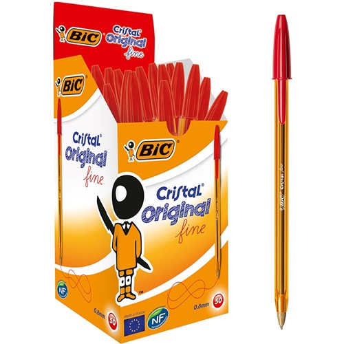 Bic Cristal Ballpoint Pen 0.8mm Fine Red Box Of 50
