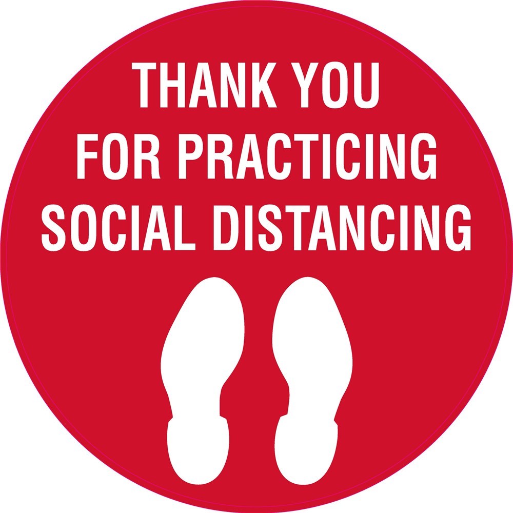 Brady Floor Marker Thank You For Practicing Social Distancing 400mm Red/White
