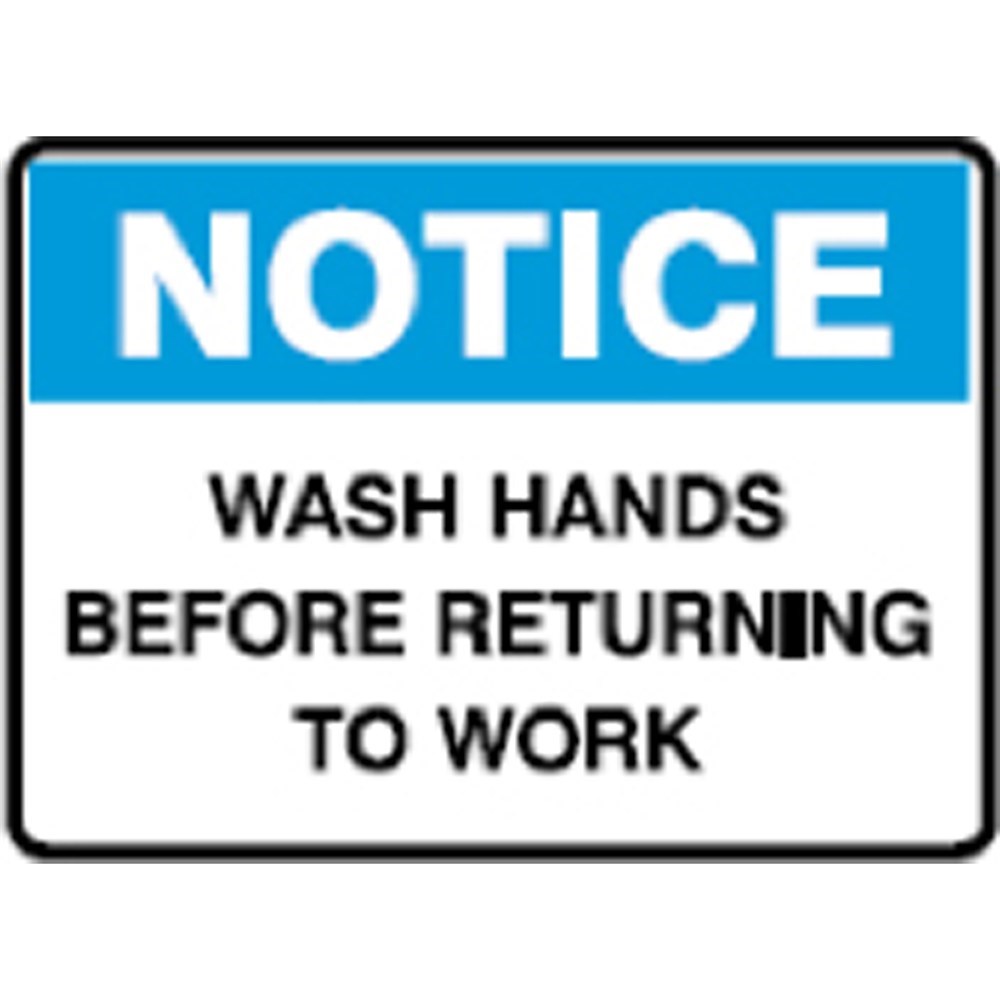 Wording: Notice Sign Wash Hands Before Returning To Work.