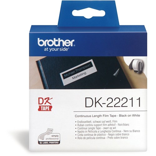 Brother DK-22211 Label Rolls 29mmx15.24m Black on White Continuous Film