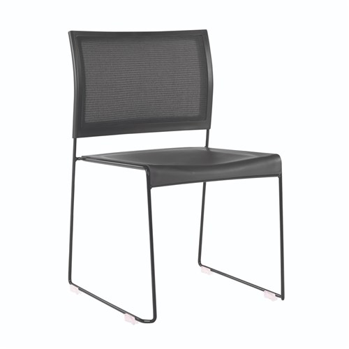 Composition: Mesh back and Polypropylene seat. Black powder coat base.