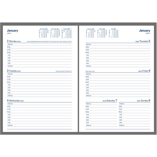 Hardwearing, linen-look cover. Extensive range of internal features, including notes, planners and essential information.