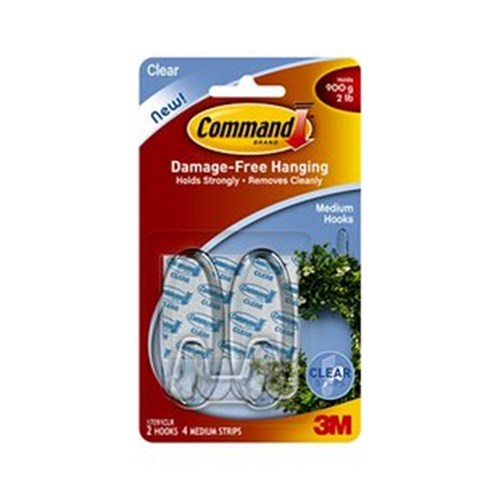 COMMAND ADHESIVE MEDIUM HOOKS CLEAR No. 17091CLR PK2