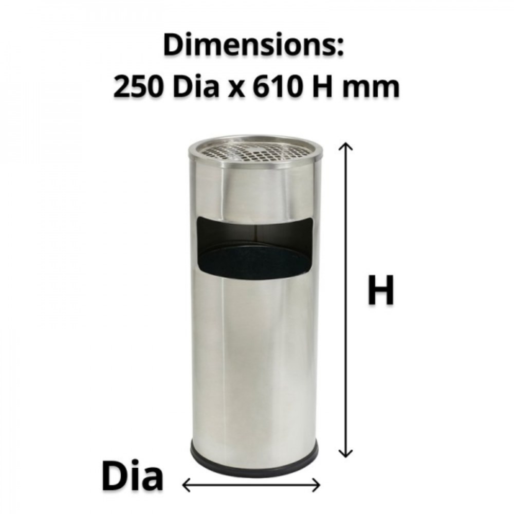 Compass Cylindrical Lobby Bin With Ashtray 10 Litres Stainless Steel