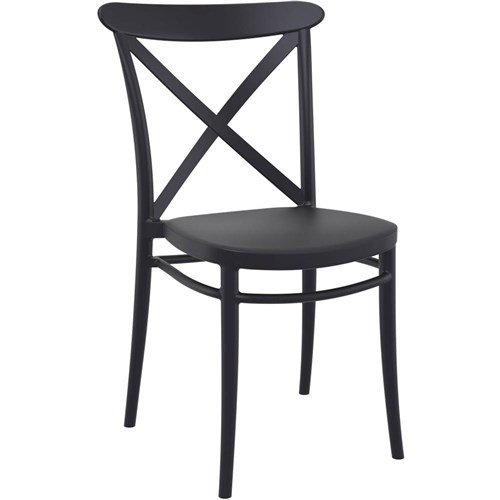 Cross Back Hospitality Dining Chair Indoor Outdoor Use Stackable Polypropylene Black