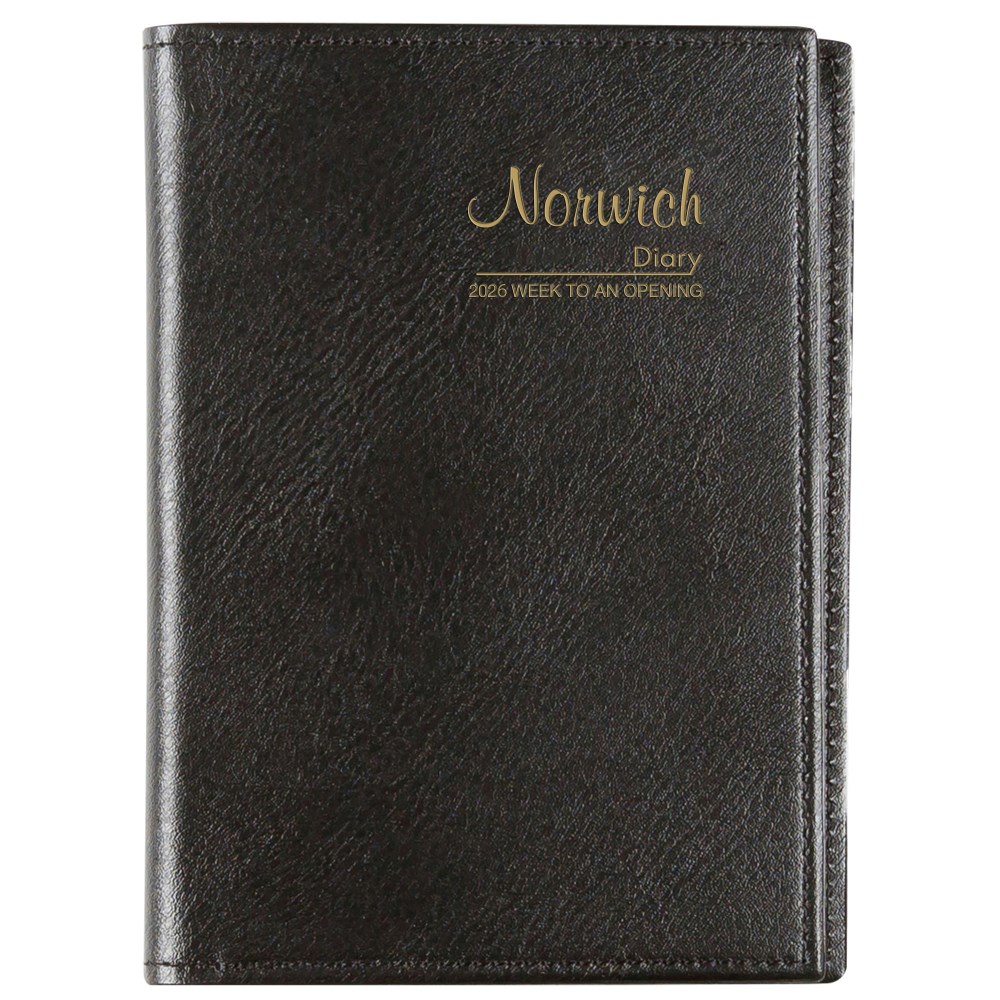 Featuring a stylish flexible leather grain cover finished with the famous gold foil 'Norwich' logo, stitched edges and fine ivory paper.