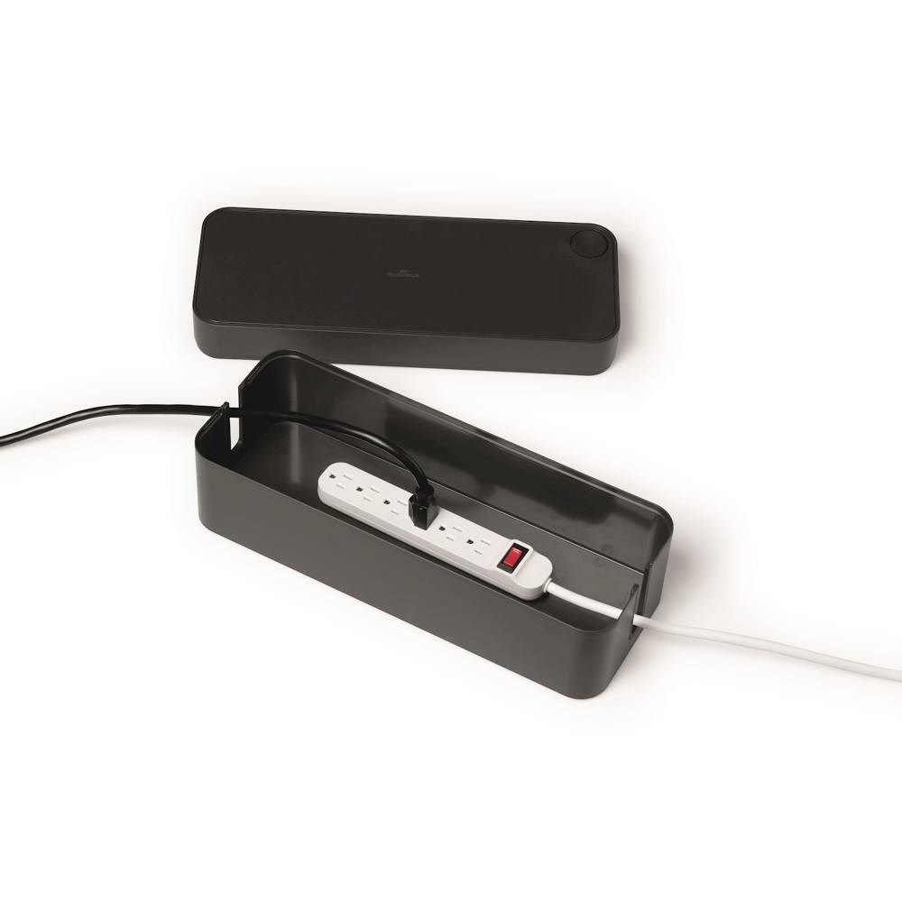 Elegant cable box to hold cables and 5-socket strip.