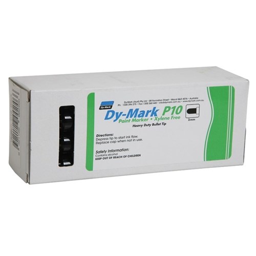 Dy-Mark P10 paint markers contain xylene-free paint and have a 2mm bullet tip