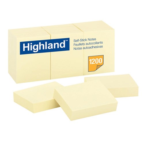 HIGHLAND STICK ON NOTE 6539 YELLOW 35X48MM Pack of 12