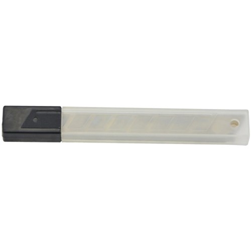 Replacement 9mm cutting blades come packed in a convenient plastic case
