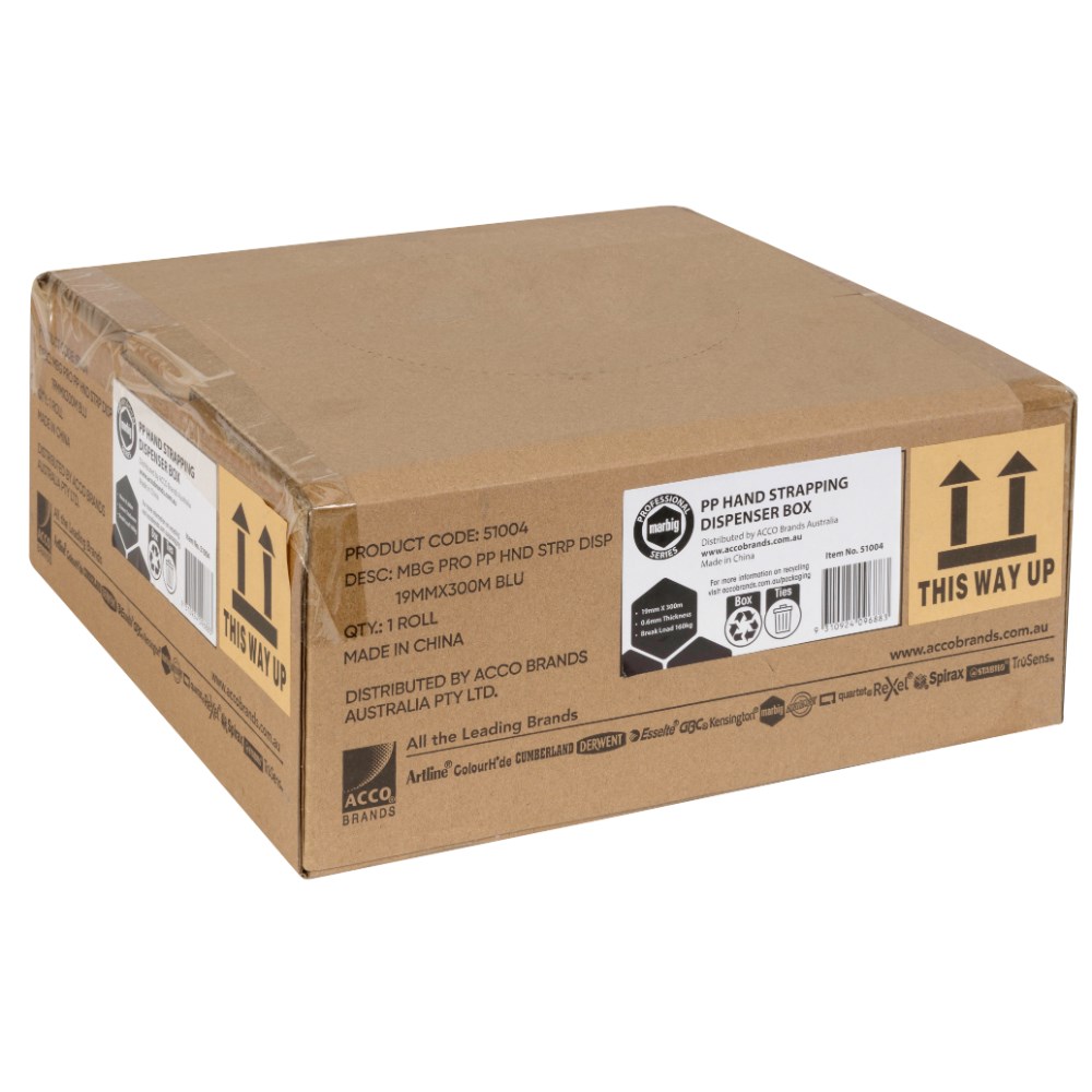 Marbig Professional Polypropylene Hand Strapping Dispenser Box 19mmx300m Blue