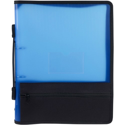 Marbig Zipper Binder With Extra Storage A4 2 O-Ring 25mm Blue