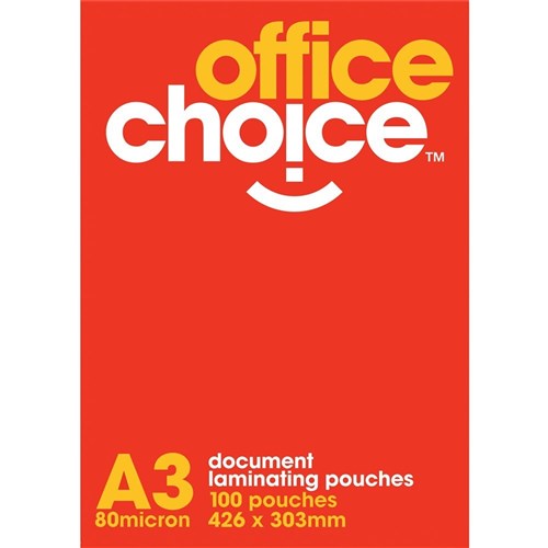 Office Choice Laminating Pouches A3 80 Micron Pack of 100