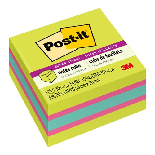 Post-It 2027-SSGFA Super Sticky Notes 76mmx76mm Bright Assorted 360 Sheets