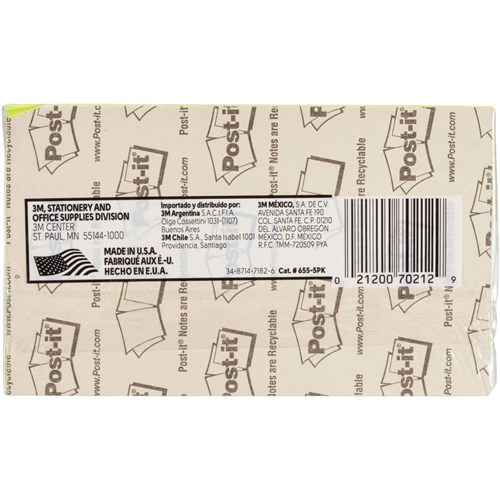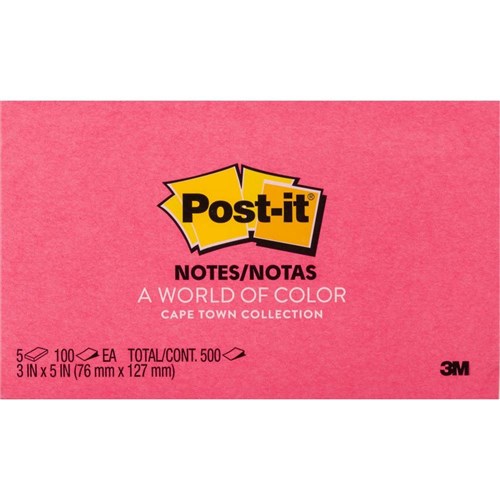 Post-It 655-5PK Notes Neon 76x127mm Capetown Assorted 100 Sheets Pack of 5