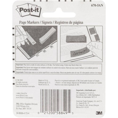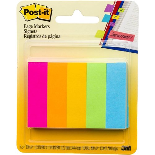 Post-It 670-5AN Page Markers 12x44mm Neon Assorted 100 Sheet Pad Pack of 5
