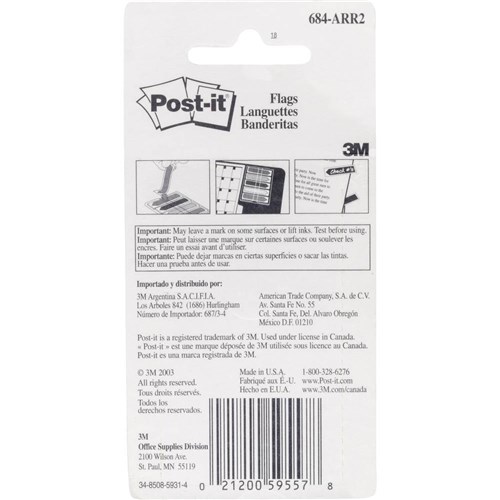 Post-It 684-ARR1 Arrow Flags 12x45mm Blue Green Purple Red Yellow Pack of 100
