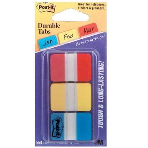 POST-IT DURABLE INDEX FLAGS 686-RYB BLUE/RED/YELLOW Pack of 66
