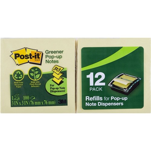 Post-It R330-RP Pop Up Greener Notes 76x76mm Recycled Refill Yellow Pack of 12