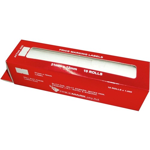 Pricing Gun Labels White Permanent 21x12mm Pack of 10