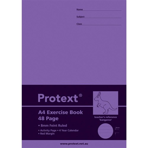 Protext Exercise Book A4 8mm Ruled 70gsm 48 Page Red Margin Kangaroo