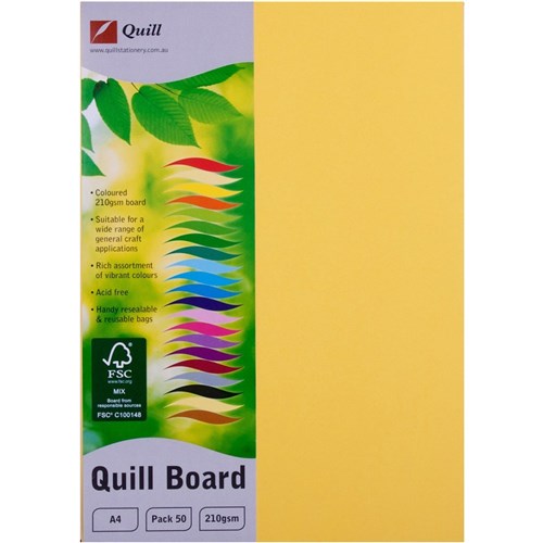 Quill Board A4 210gsm Sunshine Pack of 50