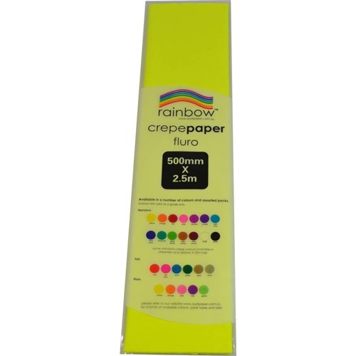 Rainbow Fluro Crepe Paper 500mm x 2.5m Yellow