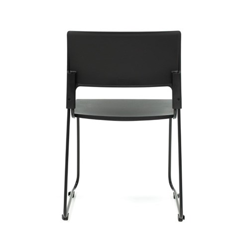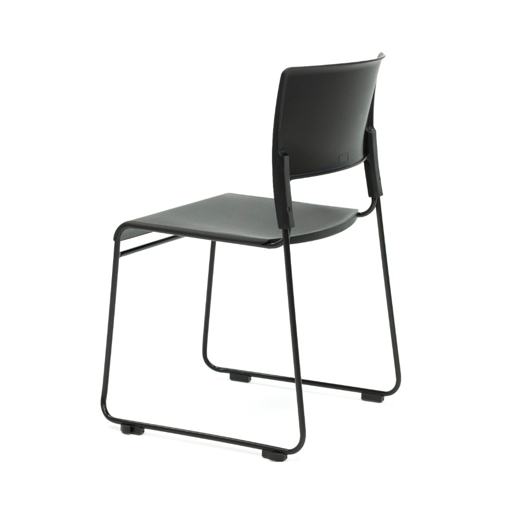 Composition: Black polypropylene seat and back rest. Robust solid steel sled base frame finished in black powder coat.