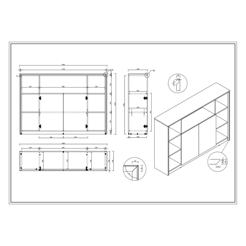 Dimensions: 1800mm W x 400mm D x 1250mm H.