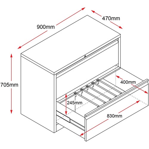 Rapidline Go Lateral Filing Cabinet 2 Drawer 900W x 473D x 705mmH Black