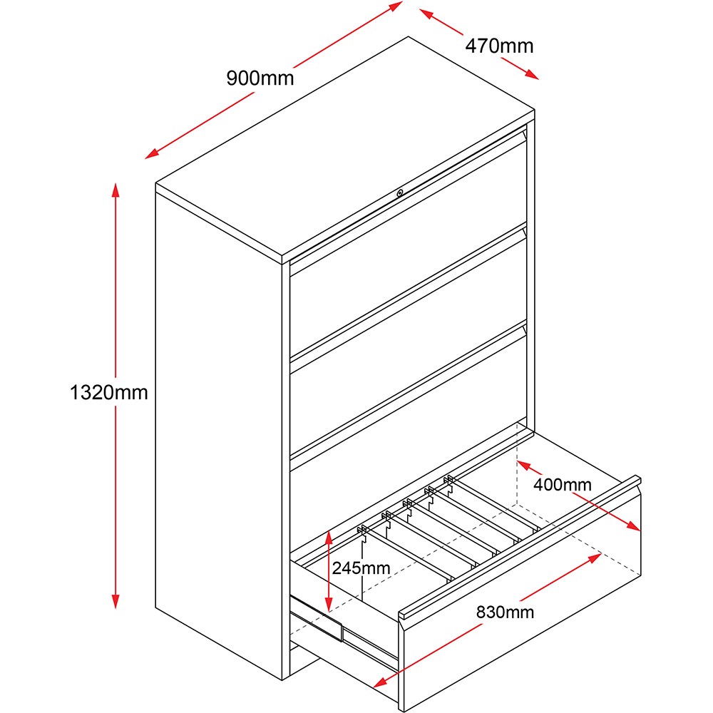 Rapidline Go Lateral Filing Cabinet 4 Drawer 900W x 473D x 1321mmH Black