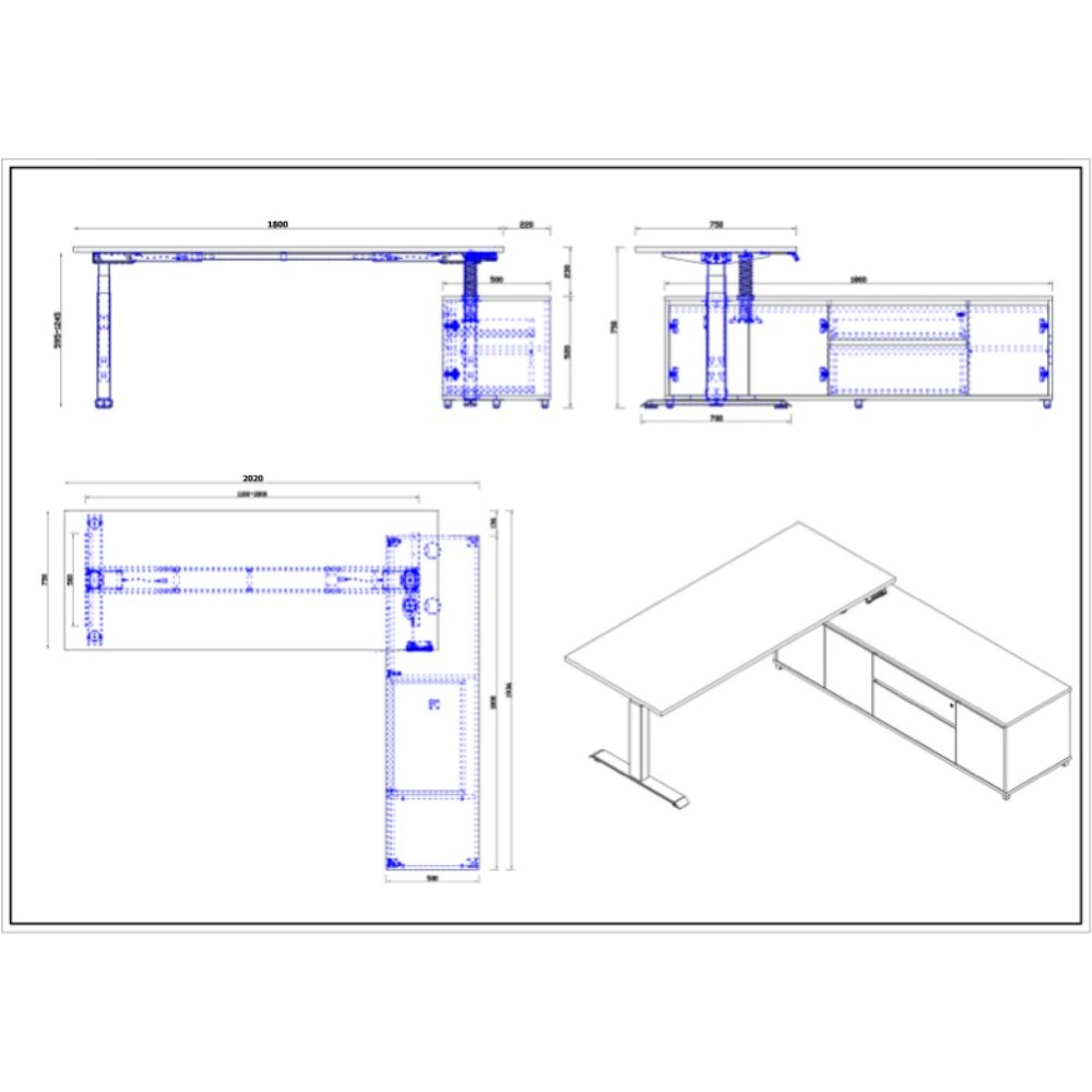 Desk Dimensions: 1800W x 750D x 620-1270mmH.