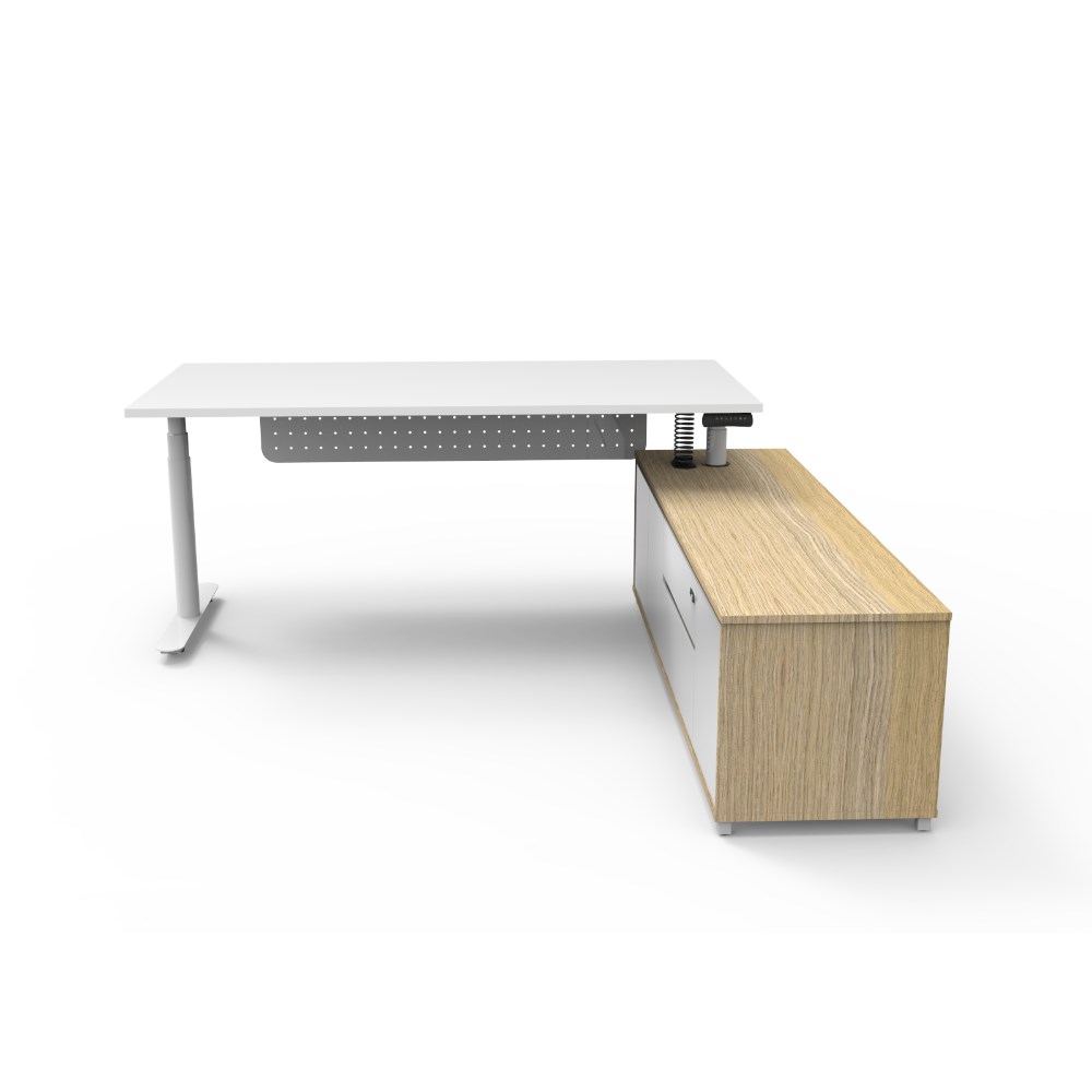 Rapidline Halo+ Executive Desk + RHS Cabinet + Panel 2020W x 2011D x 620-1270mmH Oak/White