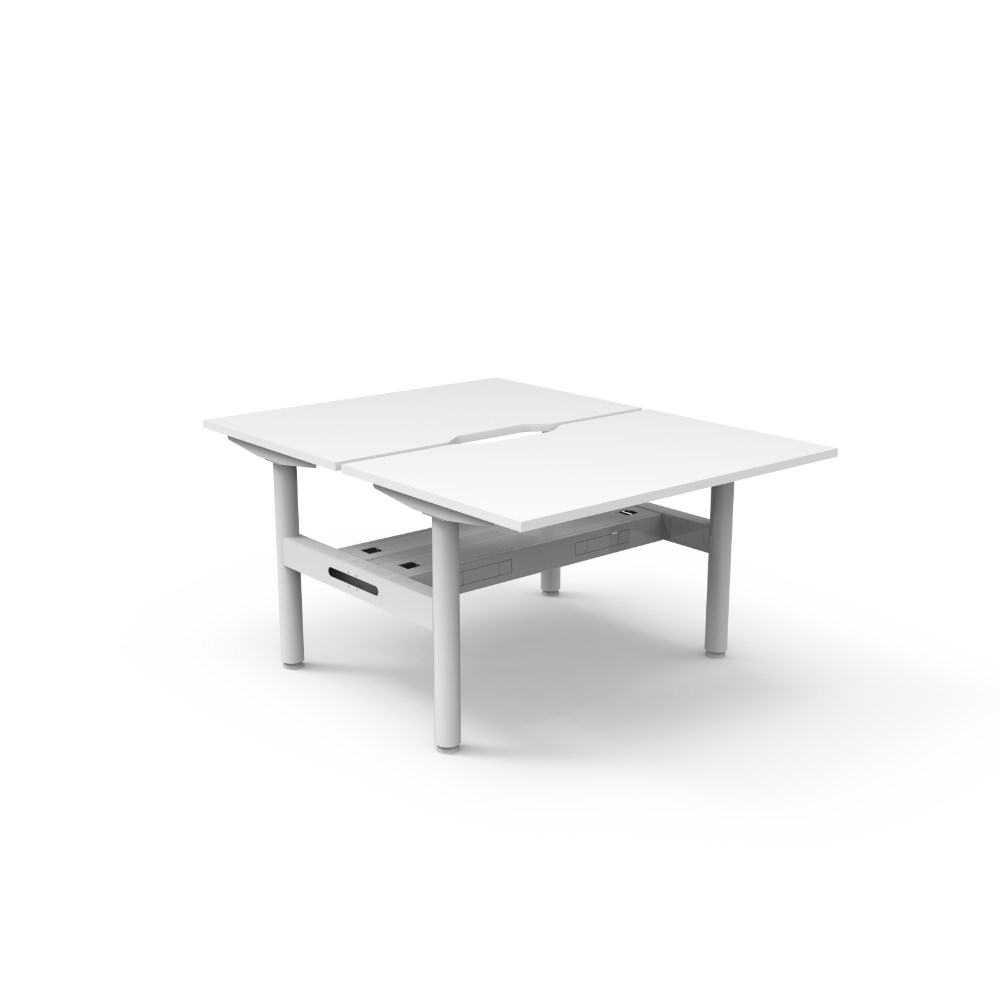 Natural White top White Satin frame. Double sided workstation with cable tray.