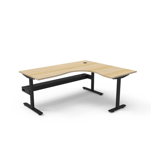 Natural Oak top Black Satin frame. Corner workstation with cable tray.