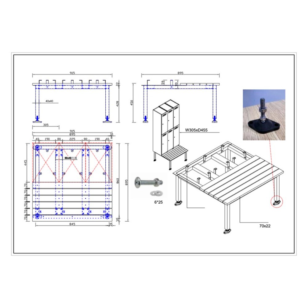 Locker stands enable the lockers to be raised from the floor allowing full cleaning access.