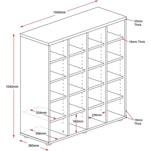 Rapidline Pigeon Hole Unit 20 Holes 1040W x 380D x 1040mmH Cherry And Ironstone