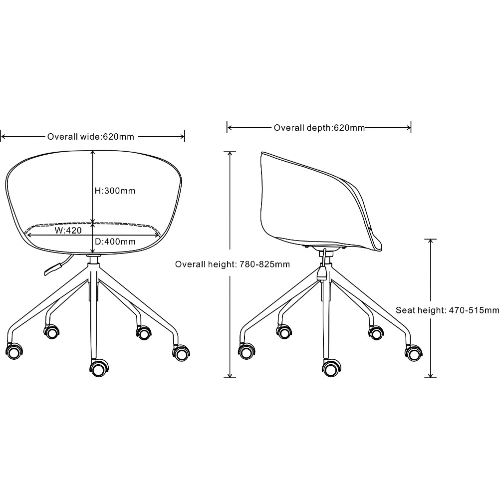 Dimensions: 620W x 620D x 780-825mmH.